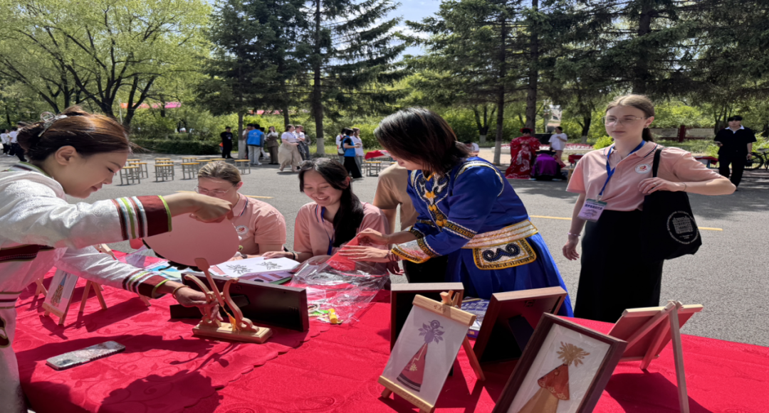 6月10日,第十二届“携手青春·共享阳光”中俄大学生交流大会隆重启幕。“边疆石榴红”学生工作室与教育科学学院共同承办的“传承中华文化,展现非遗魅力”中俄创意手工实践体验活动作为系列活动之一,于6月10日中午1点在行知楼门前成功举办。来自中俄两国的100多名青少年学子通过亲手实践,沉浸式体验了中华优秀传统文化的独特魅力。