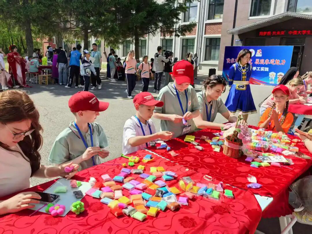 活动现场气氛热烈,中俄青少年朋友们兴趣盎然,专注投入于每一项手工实践。他们互相交流技巧,分享创作心得,在动手协作中深化了彼此的了解与情谊。