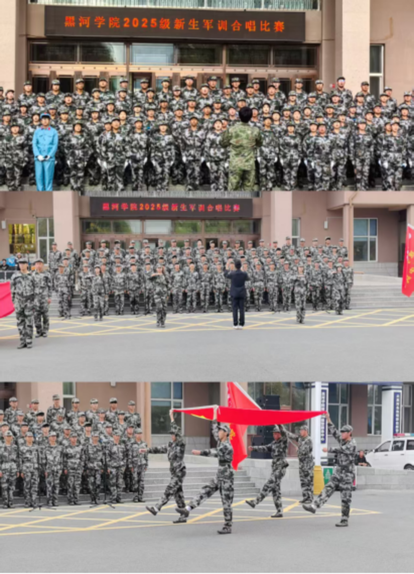 月满金秋,万里河山披锦绣;硕果盈枝,盛世欢歌颂太平。9月9日下午,我校举办2025级新生军训合唱比赛。值此纪念中国人民抗日战争暨世界反法西斯战争胜利80周年之际,让学生铭记历史、缅怀先烈、珍爱和平、开创未来。本次比赛以《黑河学院院歌》为固定曲目,各参赛队伍另选一首军旅主题歌曲作为自选曲目。十支参赛队伍以歌为媒,唱出黑河学院学子的青春担当;以声会友,展现新时代青年的蓬勃朝气;以乐传心,呐喊出中华儿女的自强不息。