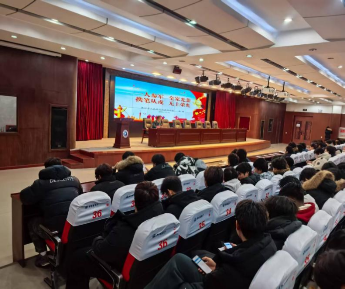为深入贯彻国家征兵工作决策部署,厚植青年学子爱国强军情怀,激发新时代大学生投身国防、报效祖国的使命担当,12月10日,我校在求知楼报告厅举办大学生征兵政策宣讲会。特邀黑河军分区政治部参谋张楠同志担任主讲嘉宾,为全校有志投身国防事业的学子解读征兵政策,提供“一对一”现场咨询,300余名学生积极参加。