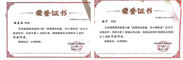 我校学子在第六届全国周恩来班征文活动中喜获佳绩