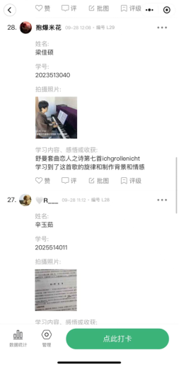 为进一步推进学风建设工作,加强学生学习动力,引领学生成长成才,不断拓宽育人新路径,音乐学院在9月开展以下学风建设活动。邀请马广斌老师举办鄂伦春口弦琴演奏培训讲座,通过本次讲座,激发同学们学习非遗文化的热情,同时让古老非遗在青年学子中得到传承。举办“民歌大家唱”演出活动,活动涵盖蒙古族、白族等不同地域风格的民歌,旨在传承民歌文化,让更多同学感受传统音乐魅力。开展“晨光阶梯・向学攀登”主题学习打卡活动。通过日常打卡,鼓励同学们积极投入学习,帮助大家养成持之以恒的学习习惯,在校园内形成比学赶超的良好学风,助力同学们在学业上不断进步,实现自我成长与提升。