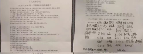 体育学院12月聚焦考风考纪建设,通 过召开专题会议、发布专项提示、组织集体承诺等形式,全方位引导学生树立诚信意识,营造公平、公正、清朗的学习与考核环境。学院组织召开学风考风建设专题会议,学院领导阐释诚信为学、端正考风对个人成长与学术共同体的深远意义,强调学生骨干应以身作则,在备考应考中发挥模范带头作用并提出“教育、管理、服务、监督”四位一体的建设路径,要求全体班长切实履行桥梁纽带职责,及时传达会议精神。为确保考试纪律入脑入心,学院发布《诚信应考专项提示》,对考试全过程作出清晰规定,提示中着重强调《黑河学院学生纪律处分实施办法》的相关条款,明确违纪作弊行为将面临严肃处理,旨在警醒全体学生严守规则底线,珍惜个人诚信记录。为筑牢学风建设根基,凝聚诚信应考的集体共识,学院特发起“诚信考试,从我做起” 倡议书签署活动。活动中,各班班长率先垂范,以郑重承诺立下遵守考纪、诚信应考的标杆;各班级迅速响应、广泛开展,组织全体同学依次签署倡议书,让诚信应考的理念转化为全体学子的自觉行动。
